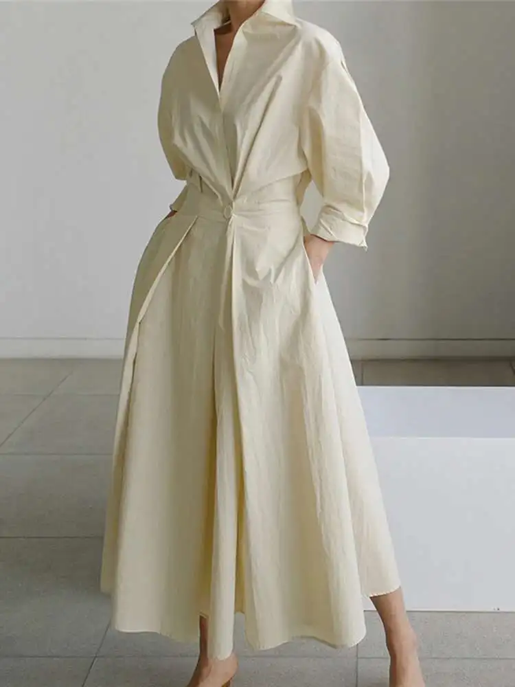 Woman Shirt Dress Beige Slim Waist One Button Stand Collar Long Sleeve Loose Casual Style 2024 New Autumn Fashion 15XM483